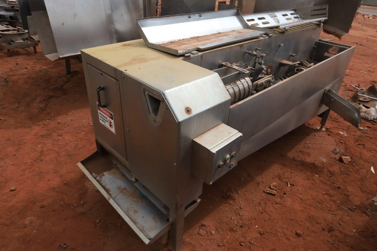 As peças da máquina de moelas através de correntes, rolos acionados por motorredutor e jatos de água em leque acionados por motobomba, a limpeza da moela é realizada de forma contínua e eficaz, devido a isso as peças tem que estar em conformidade e tudo funcionando muito bem.